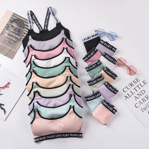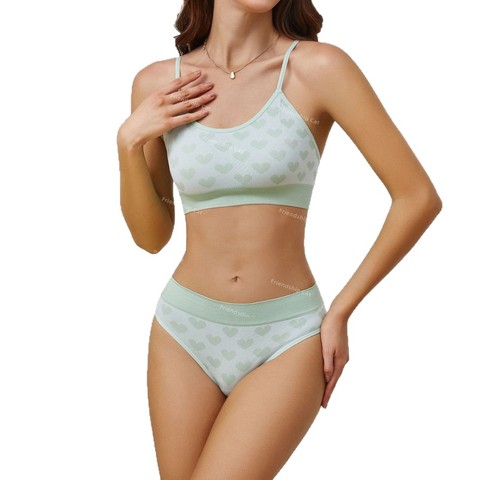 Bộ Áo ngực thể thao xuyên biên giới có thể điều chỉnh bộ Quần lót bikini rắn in hình trái tim nhiều màu nâng vest dây đai thoáng khí cốc tùy chỉnh