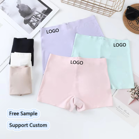 Feminino Personalizado Respirável Sem Costura Mid-Rise Boyshort Calcinha Ice Silk Diário Sólida Segurança Underwear Malha Método de Tecelagem